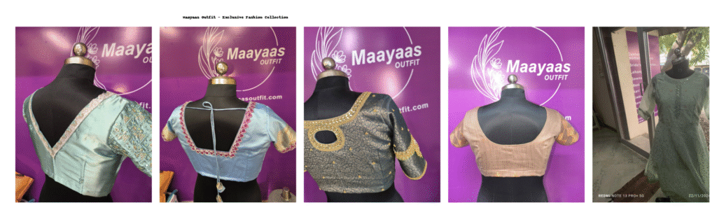 Maayaas Outfit is a fashion boutique in Madurai that offers a curated selection of stylish and trendy clothing for every occasion. Our collection includes ethnic wear, contemporary outfits, fusion styles, and custom designs, ensuring that every customer finds something that suits their taste and personality.